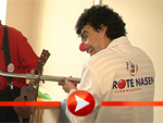 Rolando Villazón albert als Krankenhaus-Clown mit Kindern herum.