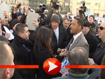 Will Smith und Rosario Dawson sind umzingelt von Fans. Nach dem Photocall zum Film „Sieben Leben“ vor dem Brandenburger Tor stürzen sich die beiden Stars in die Massen. Es macht ihnen sichtlich Spaß, Autogrammwünsche zu erfüllen.