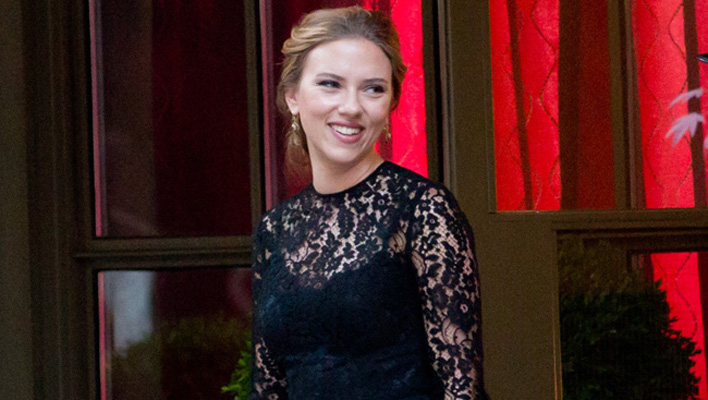Ein Blick auf die roten Haare verrät: Das hier ist Natascha Romanoff, bekannt als Black Widow alias Scarlett Johansson. Die drehte in diesem Outfit offenbar eine „Avengers“-Parodie und lies ihren Partner grün werden vor Neid.